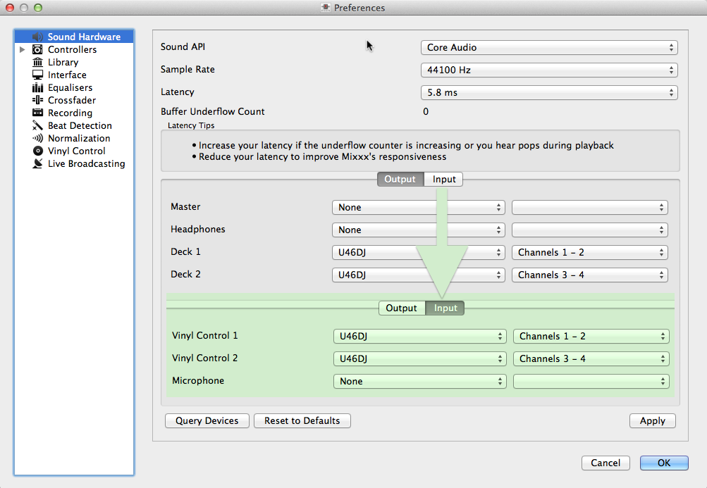 Mixxx preferences - Setting up Input and Output devices for Vinyl Control